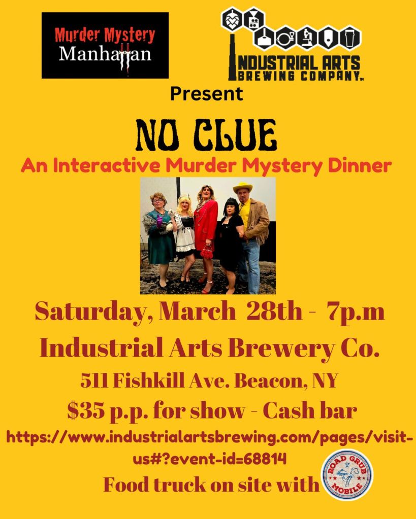 Saturday, March 28th, 6 p.m. – NO CLUE at Industrial Arts Brewery in Beacon, NY. Reservation info to follow.